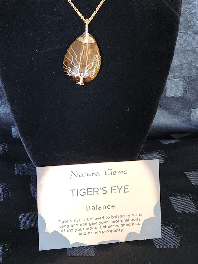 Tigers Eye set in tree of life gold colour setting on a 18" gold colour chain